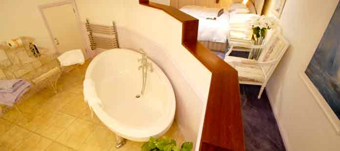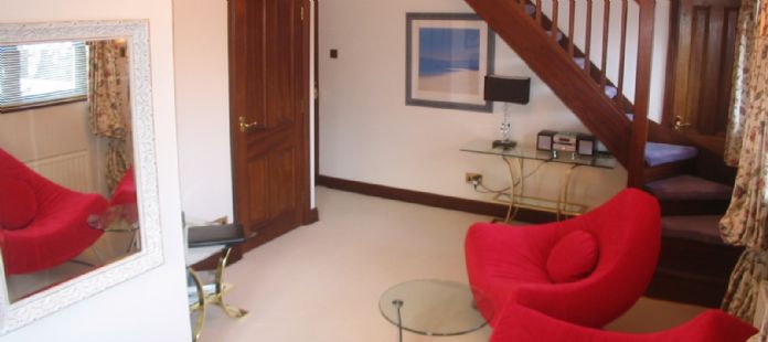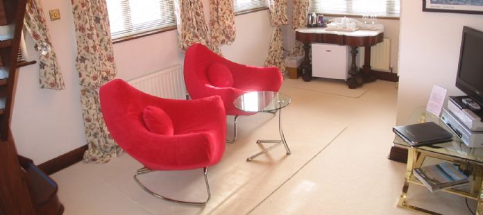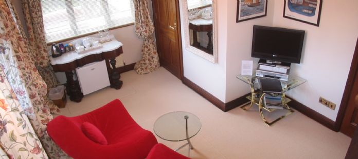 It is a truly deluxe suite with its own sitting room and marble shower room down stairs, CD/DVD/video players, fridge, free Wi-Fi, large television with Sky TV, overlooking the pool complex and garden.
