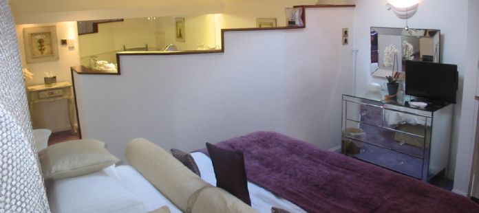 This romantic hideaway has a honeymoon suite style, and is ideal for young couples wishing to have total seclusion and luxuriate in their own very special set of rooms.